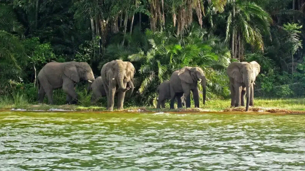 - Chimpanzees, elephants, sitatungas, and hippos.